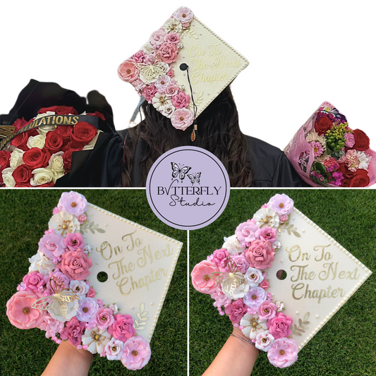 Custom Graduation Cap Topper (Handmade Paper Flowers)