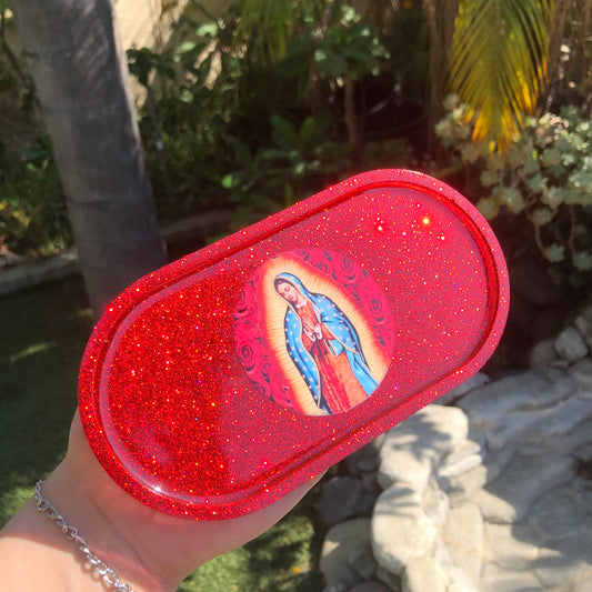 Virgencita Oval Trinket Tray- red