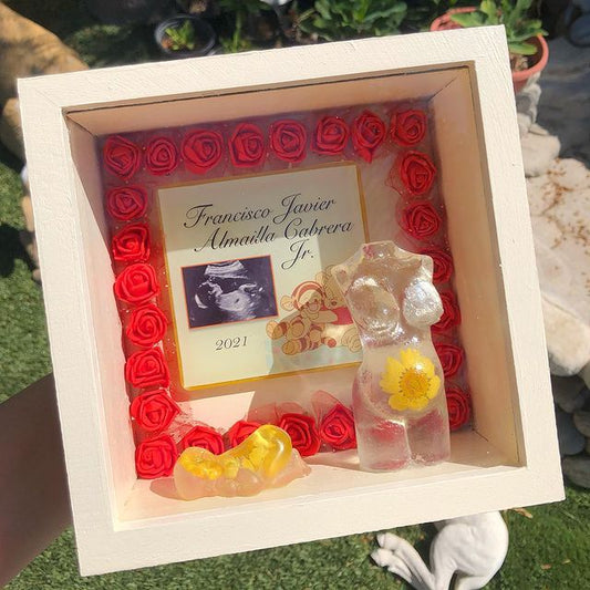 Ultrasound Pregnancy Belly/Baby Shadow Box - Floral Border