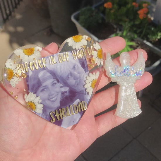 - resin photo heart + custom vinyl lettering (silver-gold-white vinyl)